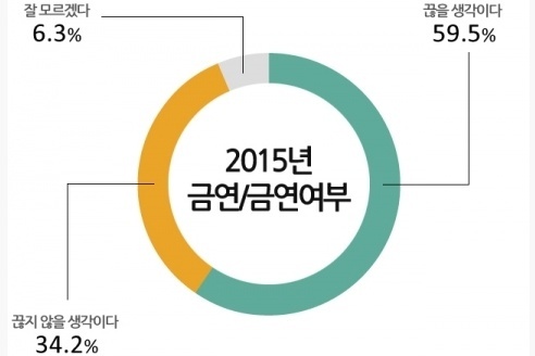 ÇöÀç ´ã¹è¸¦ ÇÇ¿ì°í ÀÖ´Ù°í ¹àÈù Èí¿¬ÀÚ¸¦ ´ë»óÀ¸·Î 2015³â »õÇØ ±Ý¿¬ ¿©ºÎ¸¦ ¹°Àº °á°ú °ú¹Ý¼ö ÀÌ»óÀÌ ´ã¹è¸¦ ²÷°Ú´Ù°í ¹àÇû´Ù. ±Ý¿¬ ÀÌÀ¯·Î´Â ‘°Ç°’À» °¡Àå ¸¹ÀÌ ¼Õ²Å¾Ò´Ù.