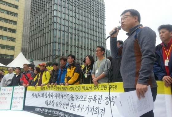 4·16 ¼¼¿ùÈ£ °¡Á·ÇùÀÇȸ´Â 2ÀÏ ¿ÀÈÄ ¼¿ï ±¤È¹®±¤Àå¿¡¼ ±âÀÚȸ°ßÀ» ¿¾î "Âü»ç 1ÁÖ±â Àü¿¡ ÇØ¾ß ÇÒ ÀÏÀº ¹è·º¸»óÀÌ ¾Æ´Ï¶ó ¼±Ã¼ ÀξçÀ» ÅëÇÑ ½ÇÁ¾ÀÚ ¿ÏÀü ¼ö½À°ú öÀúÇÑ Áø»ó ±Ô¸í"À̶ó°í Ã˱¸Çß´Ù.