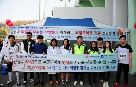 ¾Èµ¿´ëÇб³ ‘Èñ¸ÁÀ» ³ª´©´Â »ç¶÷µé’(Á¤´ÙÀÎ ¿Ü ´ëÇлý 4¸í)ÀÌ 4¿ù 12ÀÏ ¿ÀÀü ¾Èµ¿³«µ¿°º¯¸¶¶óÅæ´ëȸ¿¡ Âü¿©ÇÏ¿© ¹éÇ÷º´ ȯÀÚ¸¦ À§ÇÑ Á¶Ç÷¸ð¼¼Æ÷ ±âÁõ ¾Ë¸®±â Ä·ÆäÀÎÀ» ¹ú¿´´Ù.
