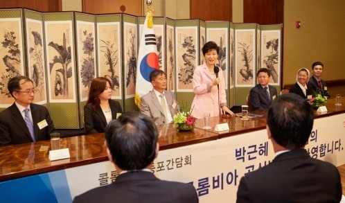 ´ëÅë·É, ÄÝ·Òºñ¾Æ Çѱ¹Àü ÂüÀü¿ë»ç °£´ãȸ Âü¼® (2015-04-19 18:55:19)