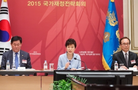 ¹Ú±ÙÇý ´ëÅë·ÉÀº 13ÀÏ ¿ÀÀü, û¿Í´ë ¿µºó°ü¿¡¼ °³ÃֵǴ 「2015³â ±¹°¡ÀçÁ¤Àü·«È¸ÀÇ」¿¡ Âü¼®ÇÏ¿© ±¹¹«À§¿ø, ¹Î°£Àü¹®°¡ µî°ú ÇÔ²² ÁßÀå±â ÀçÁ¤Àü·«°ú ÀçÁ¤°³Çõ ¹æ¾È¿¡ ´ëÇØ ³íÀÇÇß´Ù.