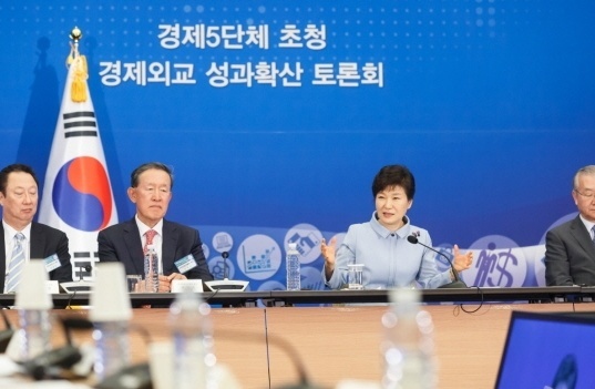 ¹Ú±ÙÇý ´ëÅë·ÉÀº 12ÀÏ ¿ÀÈÄ, ´ëÇÑ»ó°øÈ¸ÀǼҿ¡¼ °³ÃֵǴ 「°æÁ¦ 5´Üü ÃÊû ÇØ¿ÜÁøÃâ ¼º°úÈ®»ê Åä·Ðȸ」¿¡ Âü¼®ÇÏ¿© ±×°£ ÇØ¿Ü½ÃÀå ÁøÃâ°ú °³Ã´À» À§ÇØ ³ë·ÂÇÑ ±â¾÷ÀεéÀÇ ³ë°í¸¦ °Ý·ÁÇÏ°í ¿ì¸®±â¾÷ÀÇ ÇØ¿ÜÁøÃâÀ» È®´ëÇϱâ À§ÇÑ ¹Î°ü Çù·Â¹æ¾ÈÀ» ³íÀÇÇß´Ù.