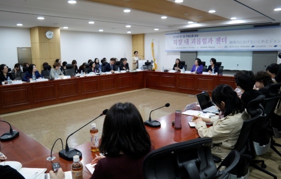 Á÷Àå ³» ±«·ÓÈû°ú Á¨´õ¸¦ ÁÖÁ¦·Î ÇÑ ‘2015³â ÇÑ·ÀÏ ¿©¼º³ëµ¿ Æ÷·³’ÀÌ »õ´©¸®´ç ÀÌÀÚ½º¹Î ÀÇ¿ø(±¹È¸ ȯ°æ³ëµ¿À§¿øÈ¸ ¹× ¿©¼º°¡Á·À§¿øÈ¸), »õÁ¤Ä¡¹ÎÁÖ¿¬ÇÕÀÇ ÇÑÁ¤¾Ö ÀÇ¿ø, Çѱ¹¿©¼ºÁ¤Ã¥¿¬±¸¿øÀÇ °øµ¿ÁÖÃÖ·Î 12ÀÏ ±¹È¸ÀÇ¿øÈ¸°ü Á¦8°£´ãȸ½Ç¿¡¼ ¼ºÈ²¸®¿¡ °³ÃֵƴÙ.