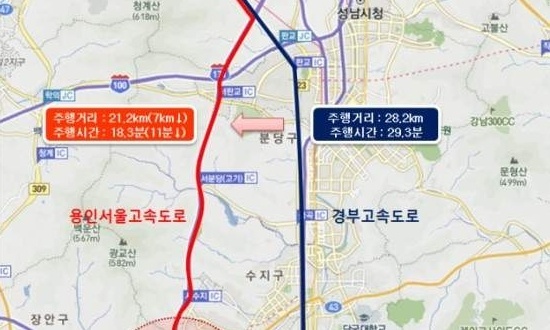 µÎ µµ·Î°¡ ¿¬°áµÇ¸é ¾çÀçIC¿¡¼ ±¤±³½Åµµ½Ã±îÁö °¥ °æ¿ì, ±âÁ¸¿¡ ÀÌ¿ëÇÏ´ø °æ·Îº¸´Ù °Å¸®´Â 7§°, ½Ã°£Àº 11ºÐ Á¤µµ ´ÜÃàµÇ¾î 18ºÐ ¸¸¿¡ µµÂøÇÒ ¼ö ÀÖÀ» °ÍÀ¸·Î ¿¹»óµÈ´Ù.