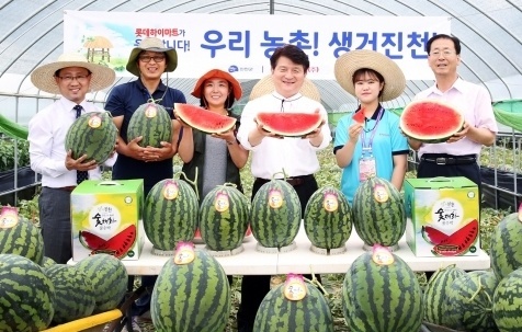 ·Ôµ¥ÇÏÀ̸¶Æ®(´ëÇ¥ À̵¿¿ì)°¡ Ãʺ¹À» ¸ÂÀÌÇØ Àü±¹ 438°³ ¸ÅÀåÀÇ Àü ÀÓÁ÷¿øµé¿¡°Ô °¨»ç¿±¼¿Í ÇÔ²² ¼ö¹Ú10ÅæÀ» ¹è´ÞÇÏ´Â ±ô¦ À̺¥Æ®¸¦ ÆîÃÆ´Ù. ÀÓÁ÷¿øµé¿¡°Ô Á¦°øµÇ´Â 10Åæ(¾à 1õ5¹éÅë) ºÐ·®ÀÇ ¼ö¹ÚÀº Àü·® ÃæºÏ ÁøÃµ Áö¿ªÀÇ ³ó°¡¿¡¼ Á÷°Å·¡¸¦ ÅëÇØ ±¸¸ÅÇß´Ù. Á¦Ã¶À» ¸ÂÀº °úÀϵéÀÌ ½ÃÀå¿¡ ÃâÇϵǰí ÀÖÁö¸¸ ÀÛȲ ¾ÇÈ¿Í ¼Òºñ ħü µîÀÇ ¿µÇâÀ¸·Î Æò³âº¸´Ù °Å·¡°¡ ½±Áö ¾Ê´Ù´Â ¼Ò½Ä¿¡ ÇöÁö »ý»ê ³ó°¡¿¡µµ µµ¿òÀ» ÁÖ´Â ÇÑÆí, ÀÓÁ÷¿øµéµµ ½Ã¿øÇÑ ¿©¸§À» º¸³¾ ¼ö ÀÖµµ·Ï ¼ö¹Ú ÁõÁ¤ À̺¥Æ®¸¦ ±âȹÇÏ°Ô µÇ¾ú´Ù.