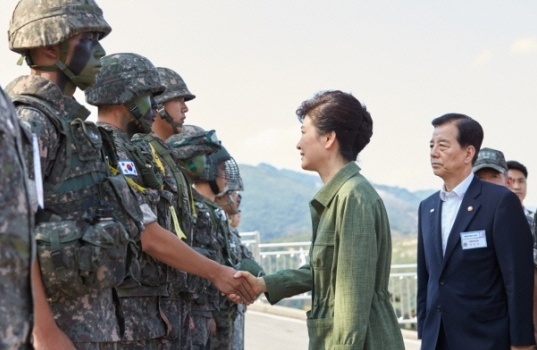 ÈÆ·Ã Âü°üÀÌ ³¡³ª¸é ¹Ú±ÙÇý ´ëÅë·ÉÀº ÈÆ·Ã¿¡ Âü°¡ÇÑ ÇÑ·¹Ì ¾ç±¹ À庴µéÀ» °Ý·ÁÇÏ´Â ½Ã°£À» °¡Áú ¿¹Á¤ÀÌ´Ù. ƯÈ÷, ¹Ú´ëÅë·ÉÀº ÀÌ ÀÚ¸®¿¡¼ ÇöÀç DMZ ÀÛÀüÀ» ¼öÇàÇϰí ÀÖ´Â GP ±Ù¹«À庴°ú ¼ö»ö´ë´ë À庴À» ÇÔ²² °Ý·ÁÇϰí, ÃÖ±Ù ºÏÇÑ µµ¹ß ÀÌÈÄ Àü¿ª ¿¬±â Àǻ縦 ¹àÈù ¿ì¸®ÀÇ ÀåÇÑ À庴µéµµ ÇÔ²²Çß´Ù.