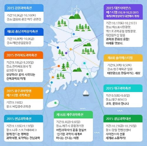 Çѱ¹°úÇÐâÀÇÀç´Ü(ÀÌ»çÀå ±è½Âȯ)Àº ¼öµµ±Ç ÀÌ¿ÜÀÇ Áö¿ª¿¡¼ ¿¸®´Â Áö¿ª´ÜÀ§ ÃàÁ¦ Áß 12°³ Áö¿ªÀÇ °úÇÐÃàÀüÀ» ¼±Á¤ÇÏ¿© Áö¿øÇϰí ÀÖÀ¸¸ç, ÀÌ Áß 10°³ °úÇÐÃàÀüÀÌ ¿Ã°¡À» 9¿ù ÃʺÎÅÍ 10¿ù ¸»±îÁö ûÁÖ¸¦ ½ÃÀÛÀ¸·Î Á¦ÁÖ, ´ë±¸, ³ªÁÖ, ÀüÁÖ, ±¤ÁÖ, ¿¹»ê, ¿øÁÖ, ´ëÀü, â¿ø µî 10°³ µµ½Ã¿¡¼ °³ÃÖµÈ´Ù°í ¹àÇû´Ù.