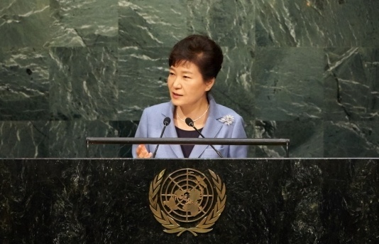 Á¦70Â÷ À¯¿£ÃÑȸ¿¡ Âü¼®ÁßÀÎ ¹Ú±ÙÇý ´ëÅë·ÉÀº ´º¿å ÇöÁö½Ã°£ 28ÀÏ ¿ÀÀü À¯¿£ ÃÑȸÀÇÀå¿¡¼ ±âÁ¶¿¬¼³À» ½ÃÇàÇß´Ù.