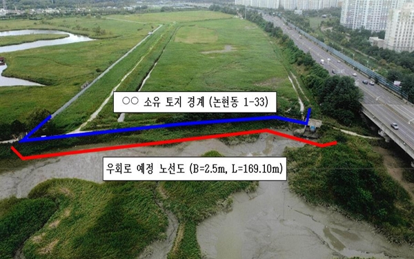 ÀÌ¿¡ ½Ã´Â °øÀ¯¼ö¸éÀ» Ȱ¿ëÇÑ ¿ìȸ ÅëÇà·Î °³¼³ ¹æ¾ÈÀ» ¸¶·ÃÇß´Ù. ¿ìȸ ÅëÇà·Î´Â ÃѱæÀÌ 169.1m, Æø 2.5m ±Ô¸ð·Î Á¶¼ºµÈ´Ù. ÇöÀç ½Ç½Ã¼³°è¸¦ ¸¶Ä£ »óÅ·Î, °ü°è±â°ü ÇùÀÇ, ÇàÁ¤ÀýÂ÷ µîÀ» °ÅÃÄ °ø»ç¿¡ µé¾î°¥ ¿¹Á¤ÀÌ´Ù.